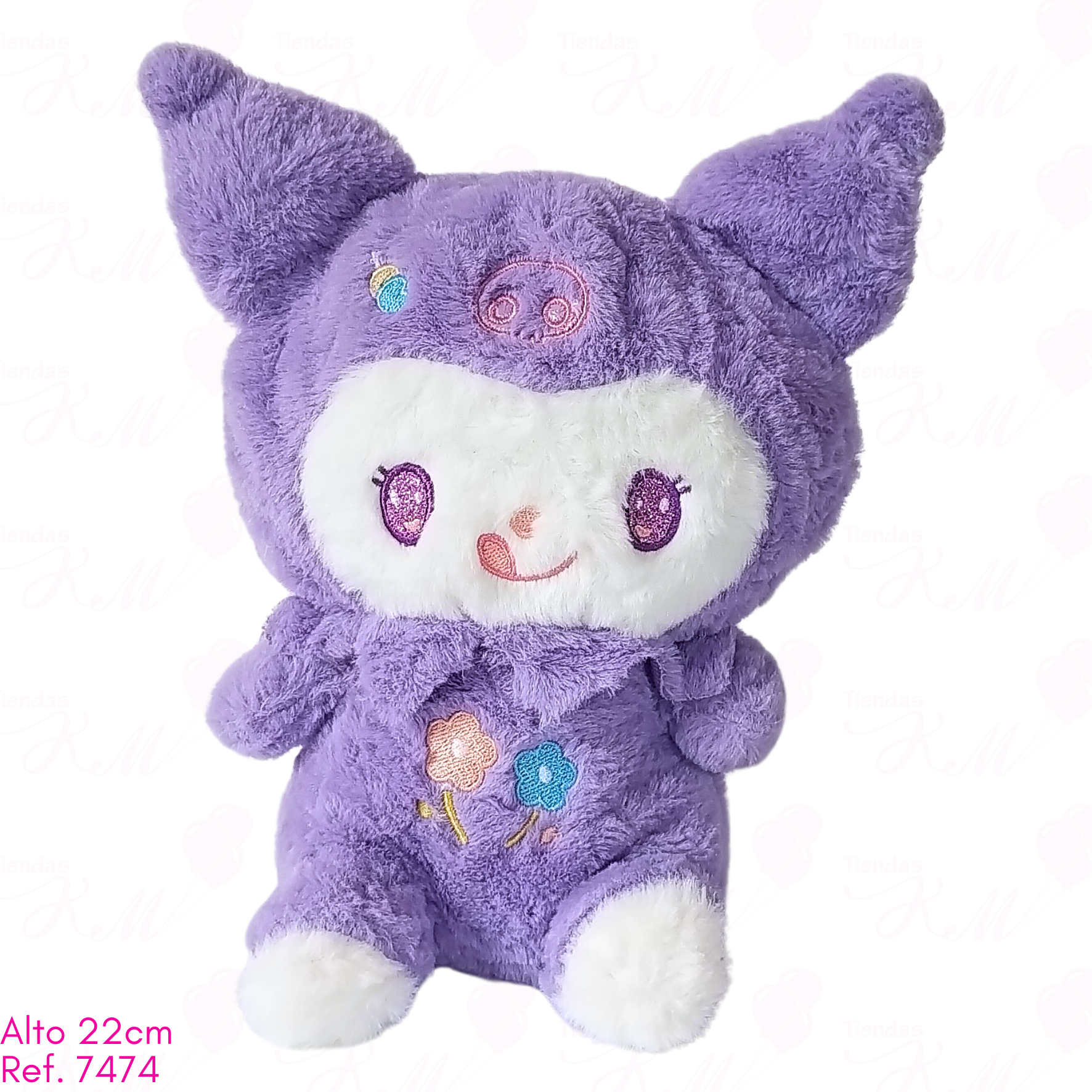 Kuromi peluda con flores bordadas / 22cm